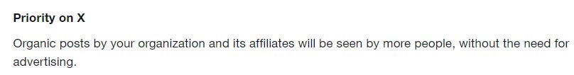 Let’s take a gander at some of the promised features as an affiliate and/or and organization on 𝕏.