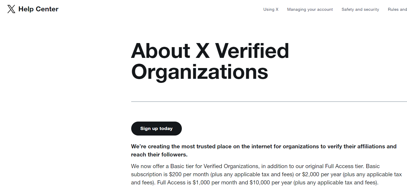 Among some of the lies that are laid out on the Verified Organizations portion of the 𝕏 Help Center include:
